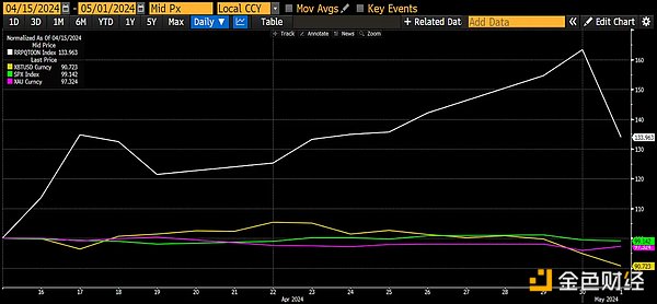 我預測“壞女孩”耶倫重新發行國債(T-bills)將為市場提供美元流動性。然而,在鮑威爾轉折講話之后,他確認將在9月降息,這兩種力量相互抵消。起初,我認為國債的凈發行會增加流動性,因為這會將反向回購計劃(RRP)抽走至零,但隨后國債收益率跌破了RRP的水平,我預測反向回購計劃會增加并抽走流動性。