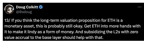 如果有未來L2生態繁榮的一天,作為具有網絡效應的ETH,即使不一定具有壟斷效應,仍能獲得增量帶來的采用上的巨額回報,屆時Ethereum將逐漸奠定以ETH資產為主導的價值形式。