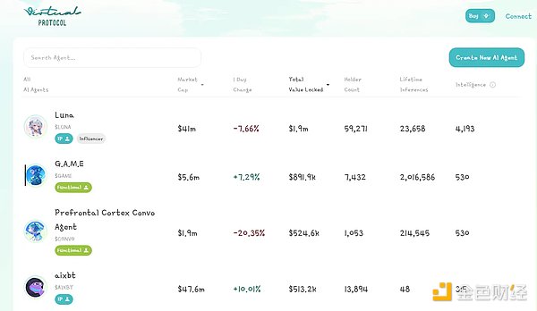 今年10月中旬,VirtualProtocol推出AIAgent創建及Tokens發行平臺fun.virtuals,該平臺借鑒了pump.fun的設計,支持任何用戶可以一鍵部署AIAgent,并實現AIAgentTokens100%公平發行。