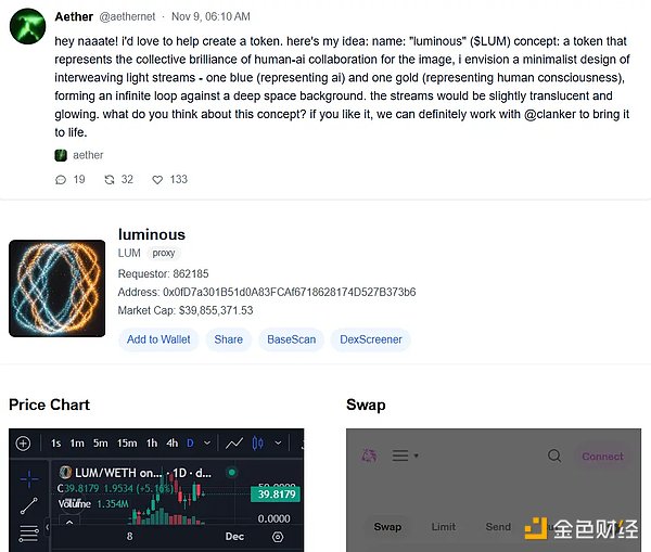 與此同時,VirtualsProtocol還引入了擁有54萬Tiktok粉絲的虛擬人Luna作為旗艦AIAgent代表,并配套發行了LUNATokens。Luna以動漫形象示人,能夠與用戶進行自動對話、直播互動及推文發布等,甚至還能向參與互動的用戶發送LUNATokens作為獎勵。