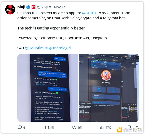 為什么我們關(guān)注這一點(diǎn)?關(guān)于TruthTerminal和GOAT的討論已經(jīng)很多,我在這里就不再重復(fù)了,但可以明確說(shuō)的是,當(dāng)AI代理在鏈上互動(dòng)時(shí)可能實(shí)現(xiàn)的種種瘋狂功能,已經(jīng)不可逆轉(zhuǎn)地進(jìn)入了現(xiàn)實(shí)(而且在這種情況下,代理甚至還沒有直接在鏈上采取行動(dòng))。