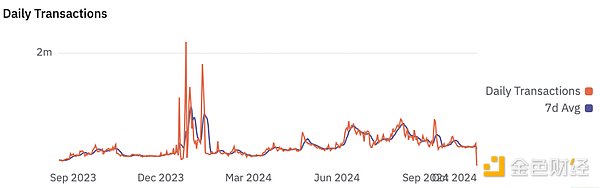 從日活來看,Mantle的月活用戶在2024年4月底出現了大幅增長,并在此之后保持了一個更高的平均水平。當前的月活用戶在4萬左右,與一年多前2023年9月左右的水平相比增長近3倍。
