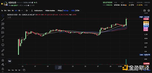 這個(gè)Tokens是在馬斯克第一次提及KekiusMaximus這個(gè)概念當(dāng)天創(chuàng)建,并在馬斯克第二次提及時(shí)沖擊到200萬美元市值附近,之后價(jià)格一路走低,但社區(qū)賬號(hào) @kekius_onsol 也一直保持活躍,直到今天趕上熱點(diǎn),成為整個(gè)概念里最火熱的SolanaTokens。(令人感嘆,社區(qū)的運(yùn)氣確實(shí)挺好。)