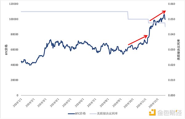 圖13:2024年BTC價格與美聯(lián)儲決議利率