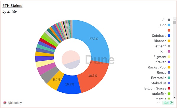 流動性質押協議Lido[15]控制著約28%的 ETH總質押,Coinbase[16]控制著約11%,這引發了對治理權和驗證權集中于少數行業巨頭的擔憂。Beaverbuild[17]和TitanBuilder[18]生產了Ethereum約89%[19]的區塊,進一步加劇了對抗審查能力和最大可提取價值(MEV[20])控制的憂慮。