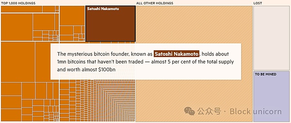 神秘的Bitcoin創始人中本聰持有約100萬枚Bitcoin,這些Bitcoin從未被交易過——幾乎占總供應量的5%,價值近1000億美元。