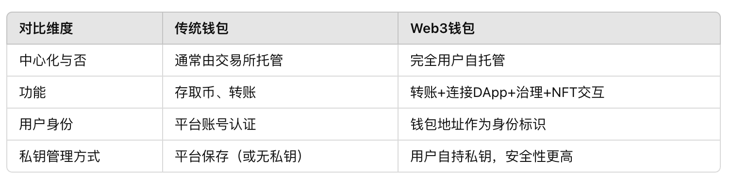 二、Web3錢包與傳統(tǒng)錢包的區(qū)別