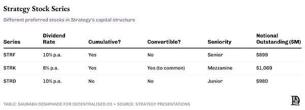 這一結構的核心是三種不同的永久優先股系列:STRF、STRK 和 STRD,每種都針對不同的投資者類型進行了定制。