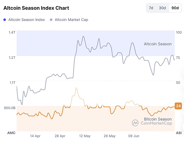 BTC主導(dǎo)指數(shù):截至6月31日,當(dāng)前BTC主導(dǎo)指數(shù)為64%,持續(xù)攀升。