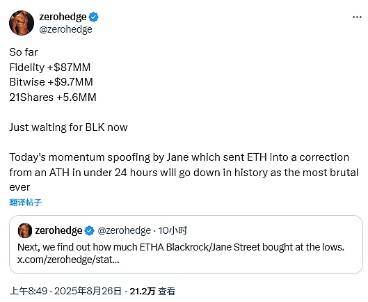 另一個引發(fā)關(guān)注的傳言涉及做市商JaneStreet的操作。有消息稱,該公司的"動量欺騙"操作導致Ethereum在創(chuàng)出歷史新高后不到24小時內(nèi)陷入修正,被形容為"史上最殘酷"的操作之一。