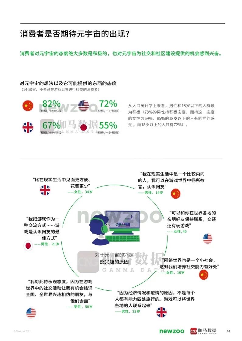 本次報(bào)告由Newzoo聯(lián)合伽馬數(shù)據(jù)聯(lián)合發(fā)布。報(bào)告對(duì)于全球以及cn市場(chǎng)的元宇宙發(fā)展進(jìn)行了深入的分析。話題包括諸如元宇宙的歷史于演變、游戲生態(tài)系統(tǒng)的機(jī)遇和影響、消費(fèi)者洞察、以及cn元宇宙發(fā)展?fàn)顩r等特別主題。