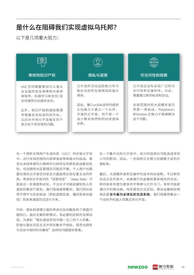 影視、音樂、快消、旅游等領(lǐng)域已經(jīng)率先進(jìn)入元宇宙,交通、網(wǎng)絡(luò)安全、城建、醫(yī)藥等即將進(jìn)入。元宇宙將成為游戲發(fā)展的下一階段——從游戲即服務(wù)(Games-as-a-Service)到游戲即平臺(tái)(Games-as-a-Platform),全球和cn的用戶對(duì)元宇宙的認(rèn)識(shí)有所差異(報(bào)告中有全球和cn用戶調(diào)研),三大障礙阻礙元宇宙產(chǎn)業(yè)的發(fā)展。